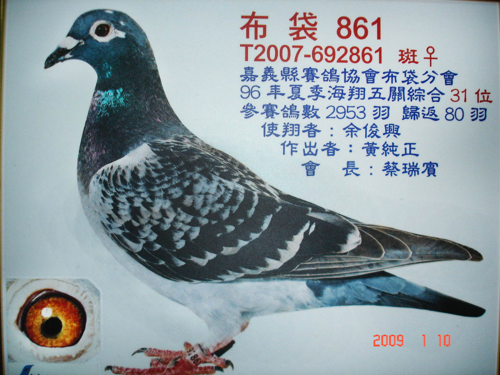 直孫 : C.11-522287 斑 布袋支會夏季五關綜合30位 [殘71羽] 直孫 : C.11-120943 斑 桃園聯合會冬季五關綜合66位 [殘402羽] 直孫 : C.12-832781 斑 布袋支會夏季三關綜合113位[第四關失格殘39羽]一.二.三關開入賞 直孫 : T.14-616393 斑 桃園聯合冬季五關綜合184羽[殘301羽] 直子 : K.15-320334 斑 朴子信鴿夏季四關綜合19位[第五關全滅] 父鴿 : B.97-3039170 斑 直子.馬拉松號2003年KBDB超長距離全國2位 祖父 : B.95-3148018 斑 王子號" 1997年波治全國冠軍32890羽最高分速 祖母 : B.96-3298887 斑 王子號直女 母鴿 : C.02-677815 斑 金母815"本身交配三羽公鴿連續五年南北海入賞 祖父 : C.98-505944 灰 奧斯卡944"直子女入賞五羽下代南北海入賞多羽[黃金配對直子] 祖母 : C.96-214290 斑 金母290"直子女入賞五羽下代南北海入賞多羽[本舍基礎配對直女] 上一羽鴿 | 下一羽鴿 ![]() |