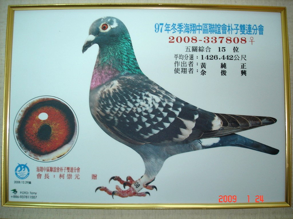 直子 : C.10-334769 灰 信義支會冬季第五關失格 直女 : C.10-207074 斑白羽 布袋支會冬季第一關冠軍[第二關失格] 直子 : C.10-207075 斑 布袋支會冬季第二關冠軍[第四關失格]副環五K冠軍 直子 : C.12-027069 灰 北彰和美冬季資格三未成立[入籠平分] 父鴿 : C.07-438372 斑白羽 本身未賽 全兄弟作出下代南北海入賞數十羽 祖父 : NL.00-1907720 斑白羽 扎羅士八千號"本身未賽 下代南北海入賞數十羽[扎羅士父子作出] 祖母 : C.00-309352 斑白羽 種母352" 本身未賽 下代南北海入賞數十羽[本舍基礎種鴿二X三] 母鴿 : C.07-438370 斑 種母370"本身未賽 直女08年北海冬季五關綜合15位 祖父 : B.97-3039170 斑 修伯特170" 王子號直子 馬拉松號之父[修伯特.杜哈美爾作出] 組母 : C.97-142230 斑 冠鳴金母"下代入賞南北海近百羽[本舍基礎配對直女] 上一羽鴿 | 下一羽鴿 ![]() |