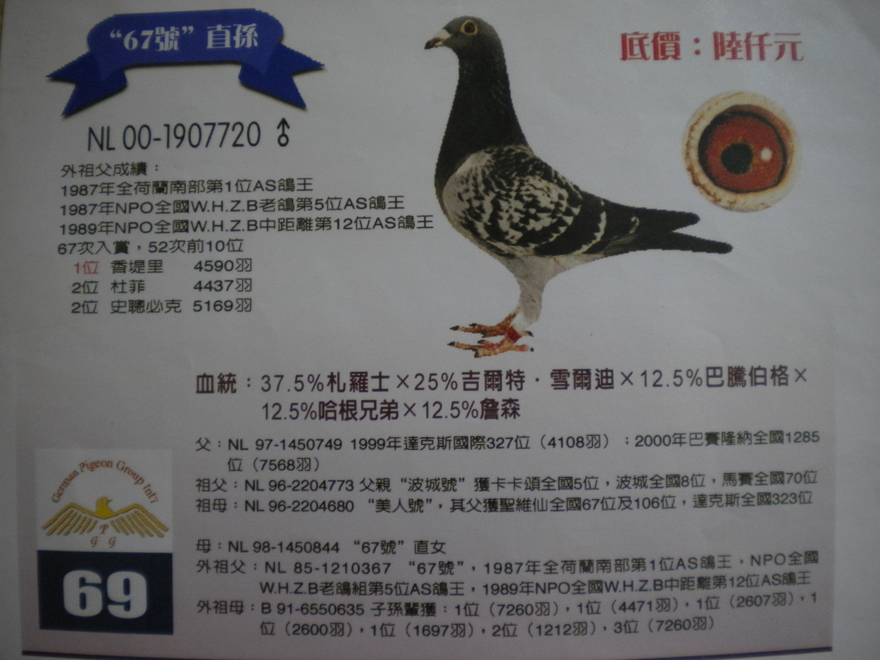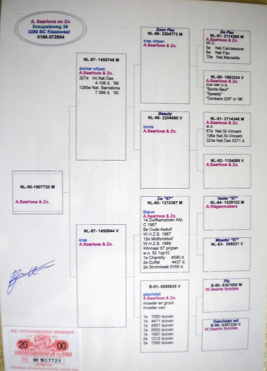 1987年全荷蘭南部第一位AS鴿王 NPO全國W.H.Z.B 老鴿組 第五位AS鴿王 1989年NPO全國W.H.Z.B 中距離第12位AS鴿王