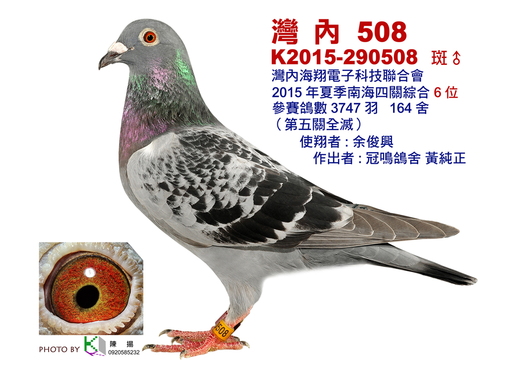 直子 : K.17-275405 灰 2018FCI國際公棚賽51位 直子 : K.17-275406 斑 2018FCI國際公棚賽84位 直子 : K.18-520221 斑 灣內支會夏季二關綜合40位第三關失格[殘13羽] 直孫 : C.20-946470 斑 北彰和美夏季五關綜合104位 孫女 : C.20-194265 灰 陸翔北海冬季五關綜合17位[殘40羽] 父鴿 : K.13-786041 斑 雙連西會夏季五關綜合亞軍[殘16羽] 祖父 : B.97-3039170 斑 直子.馬拉松號2003年KBDB超長距離全國2位 祖母 : C.06-0000000 斑 無環金母" 連續四年作出南海夏季入賞 母鴿 : K.13-787002 灰 雙連西會夏季五關綜合冠軍[殘16羽] 上一羽鴿 | 下一羽鴿 ![]() |