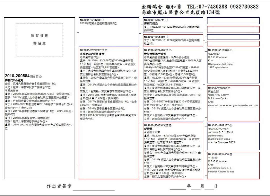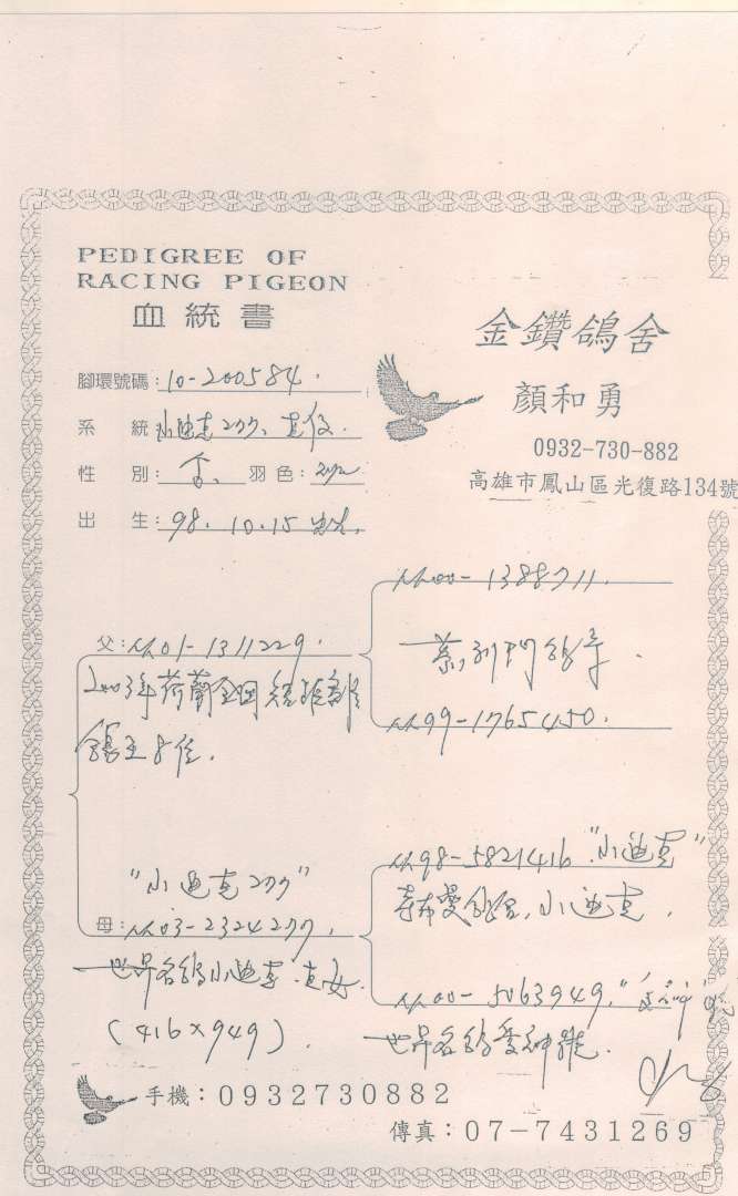 金鑽鴿舍:顏和勇