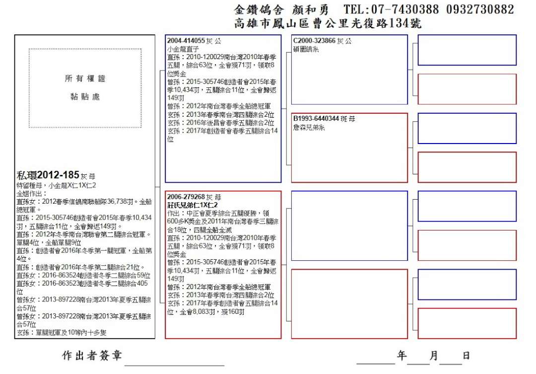 金鑽鴿舍:顏和勇