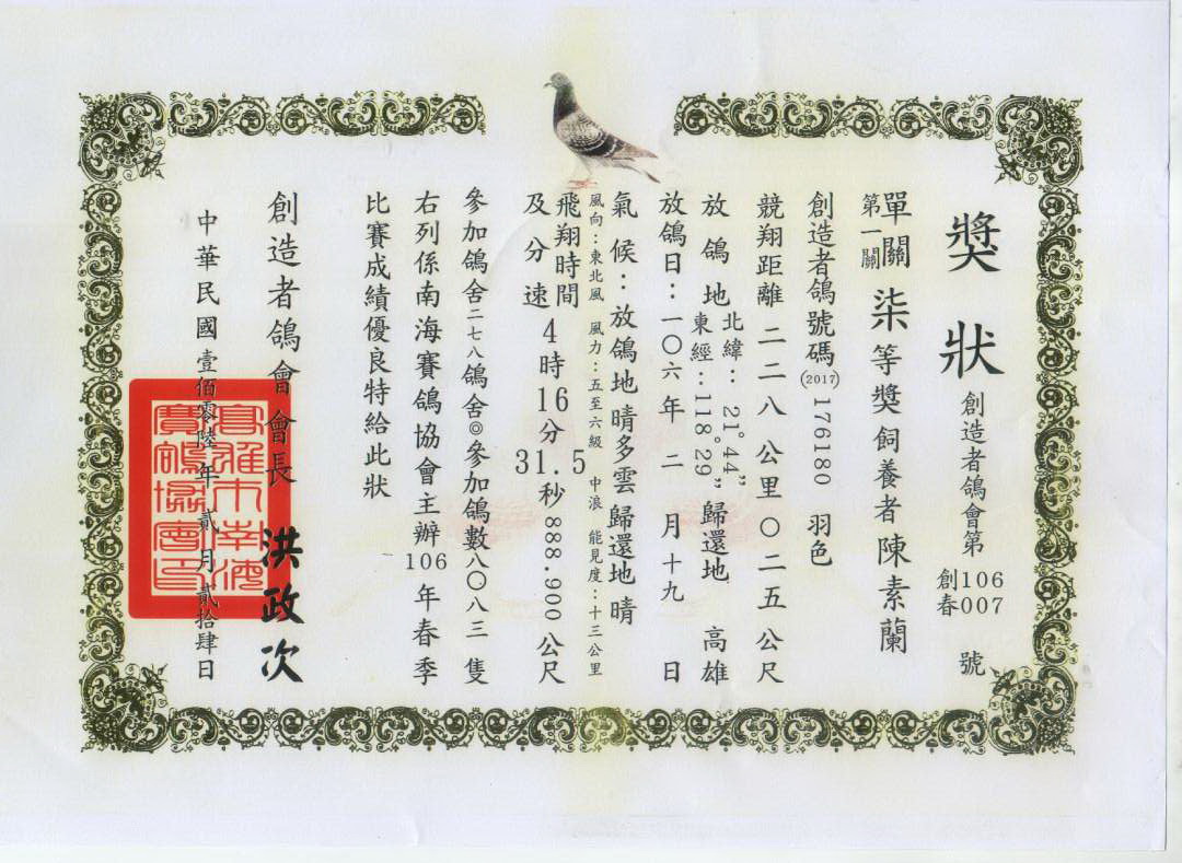 金鑽鴿舍:顏和勇