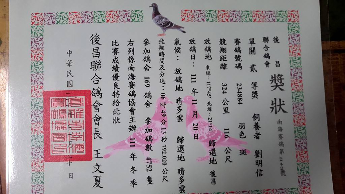 金鑽鴿舍:顏和勇